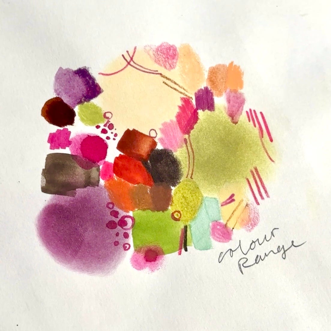 I started this whole book with a colour palette and slowly branching out to other colours throughout the process. Knowing these colours worked together helped me explore different mediums. I discovered Pan-pastels which allowed many ways of play by overlaying other mediums or layering them on top of each other.